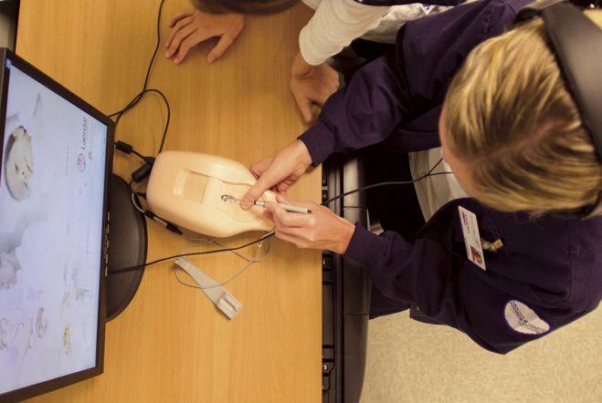 • Technology delivers the activity from the three simulation rooms into any classroom on campus. A live feed allows all students in the class to view the students in the simulation experience.