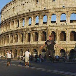 Nathan Okuley poses mid-air in Rome during a break in his work with Campus MovieFest.