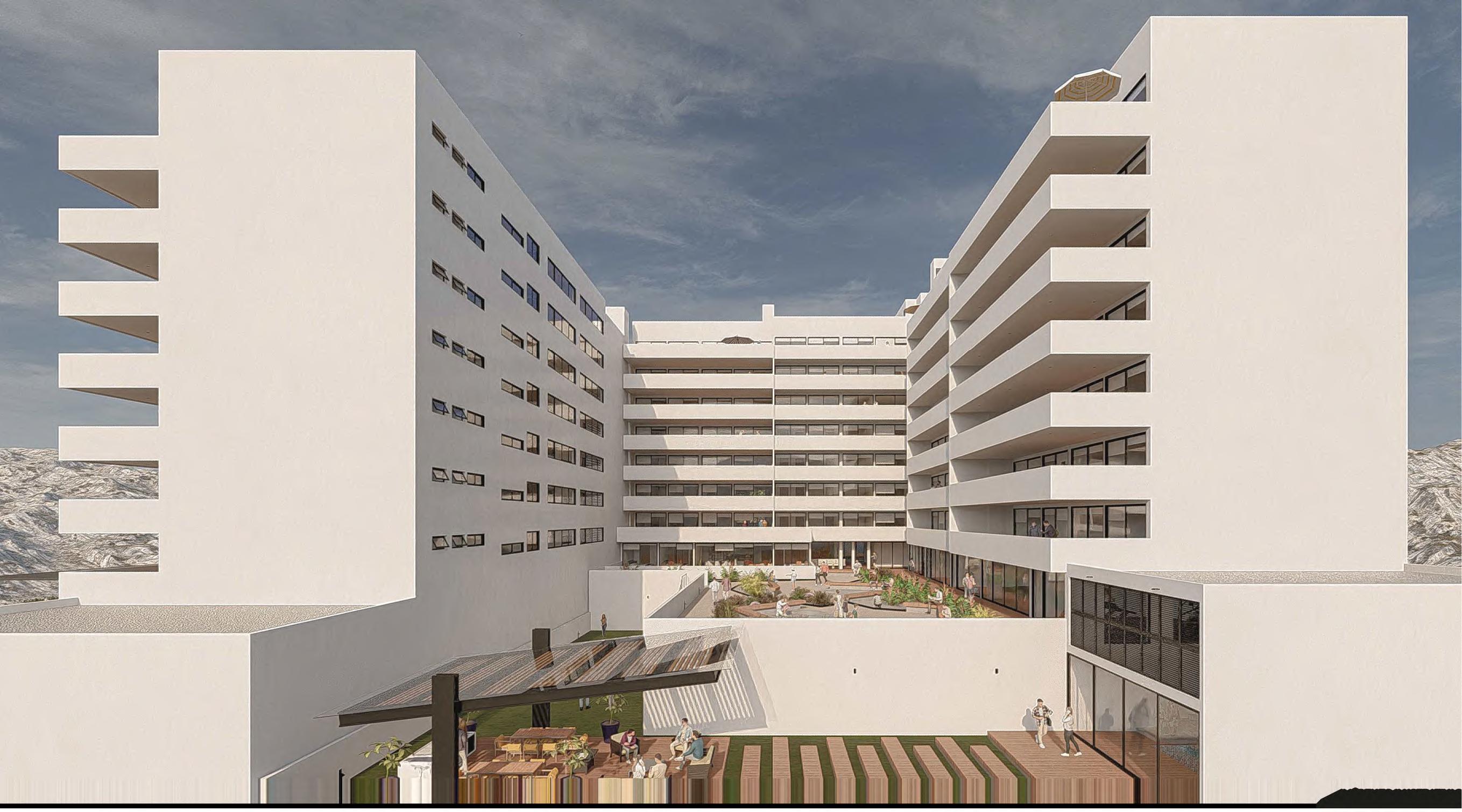 La propuesta arquitectónica del proyecto responde a la orientación del terreno, dando lugar a la creación de dos volúmenes que se interconectan mediante un puente que actúa como el núcleo funcional de las torres. Esta configuración genera un patio central que optimiza la iluminación y ventilación natural de los espacios interiores. El desplante en forma de "L" de las viviendas no solo maximiza el aprovechamiento del área libre, sino que también garantiza un alto rendimiento en confort térmico y eficiencia espacial. Abriéndose a su privilegiado contexto, permitiendo tener vistas hacia reservas federales de la zona en todo momento.