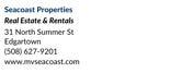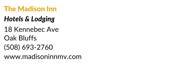 Since 1925, the Martha's Vineyard Chamber of Commerce has been dedicated to championing the unique spirit of our island community, and the businesses featured in this guide are committed to ensuringthatyourexperiencehereisnothingshortof extraordinary. Come and discover why Martha's Vineyard is affectionately known as the ultimate "HappyPlace"forsomany!