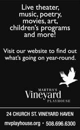 FeatherstoneCenterfortheArts: Featherstoneisthe premier destination for all things art on Martha’s Vineyard.Itscampusisbothbeautifulandlarge,and offersarobustvarietyofclassesandworkshopsyearround for people of all ages. Don’t miss their great galleryopenings!
