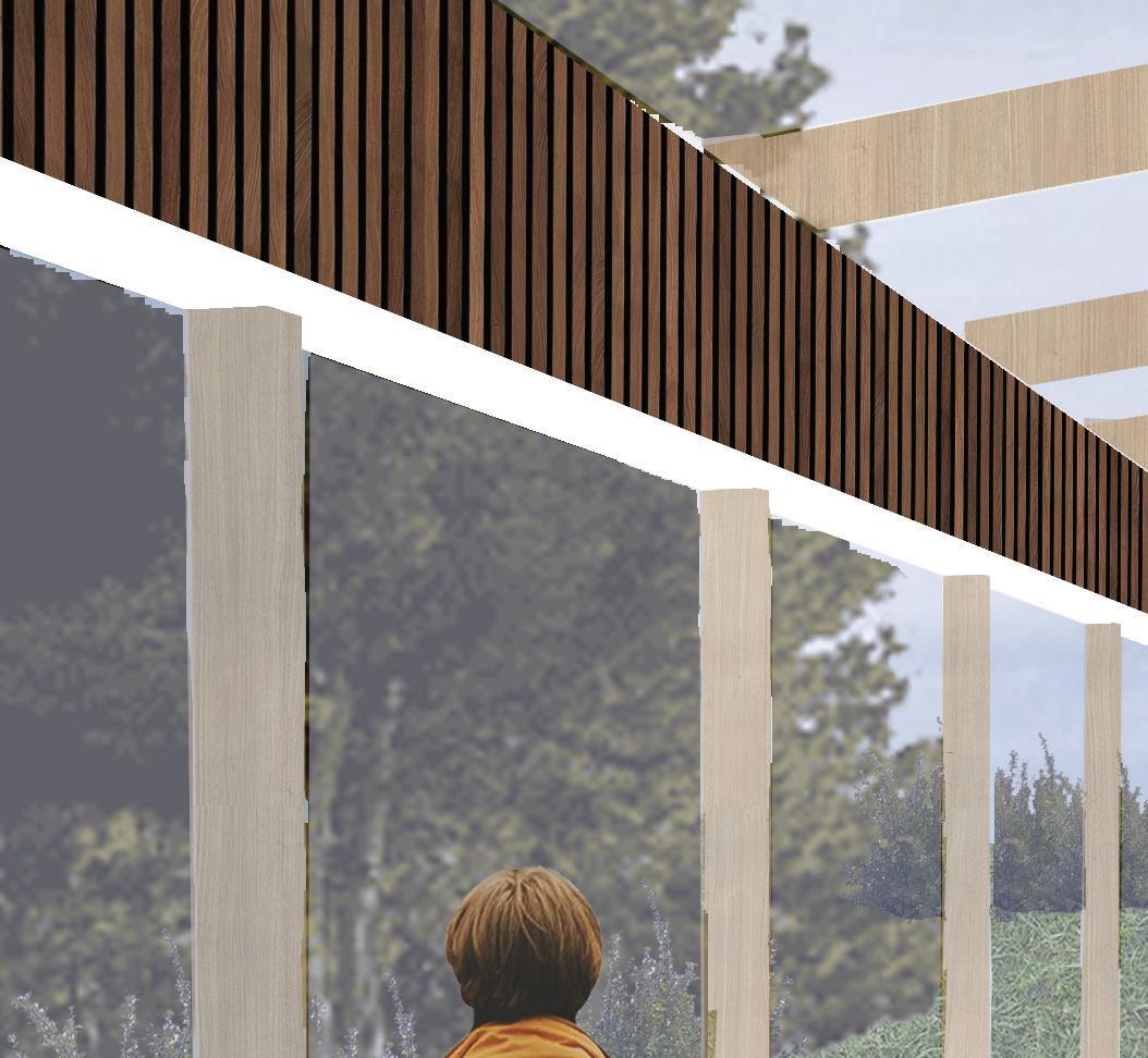Peebles Island Recreation Center, perched on Peebles Island State Park in Troy, NY, seamlessly blends leisure and water activities to create a serene environment. The intentional use of an octagonal structure symbolically unites celestial and earthly elements, fostering a harmonious ambiance. Native trees, vegetation, and materials like bamboo wood and stone, inspired by Chinese architecture, contribute to a balanced, nature-infused recreational space. The singular modular spaces and outdoor pathways with octagonal roofing for partial shading promote optimal interaction with the landscape.Peebles Island Recreation Center exemplifies a purposeful convergence of cultural influences and functional design. Its octagonal form, symbolic material choices, and thoughtful layout collectively establish a refined and harmonious recreational space, forging a seamless connection between human activity and the natural environment.