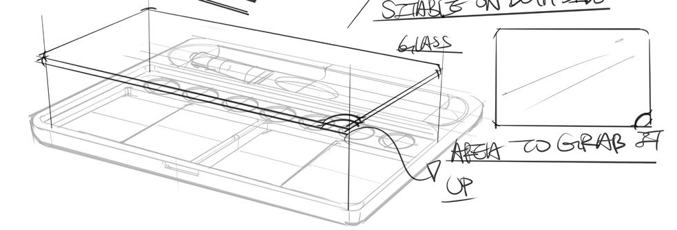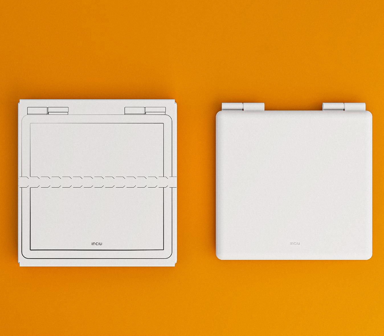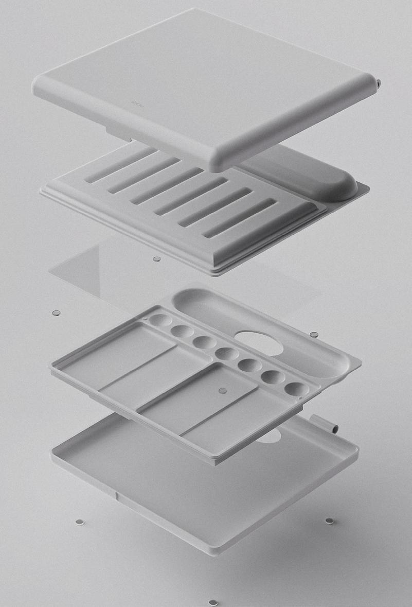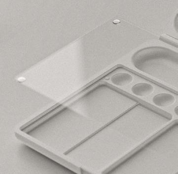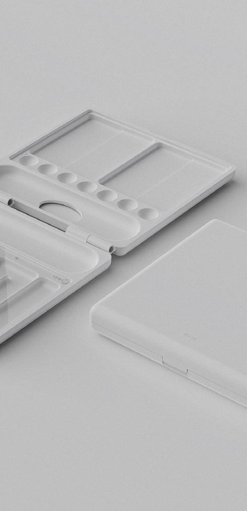 Inclu is a detachable colour mixing tray that can be held in hand or placed on a table, suitable for different painting styles. The integrated label helps colour-blind users identify paints and encourages the use of colour theory. By separating the mixing area from the tray, it keeps pigments intact while making it portable.