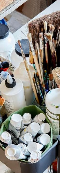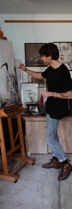 Love painting/ go for simplistic/ strong protan/ shop at hobbycraft/ seeking for inspiration/ living in a flat/ travel between studio and home