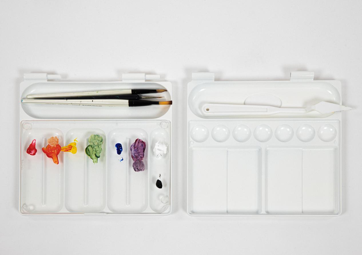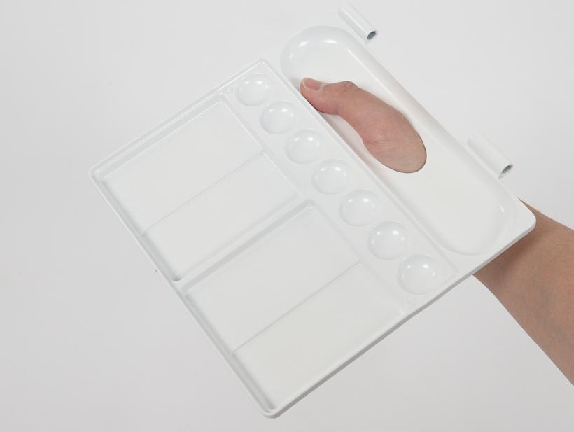 The product is attachable for personalised painting preferences, usable on both tables and hands. It also enhances the experience of cleaning the colour tray.