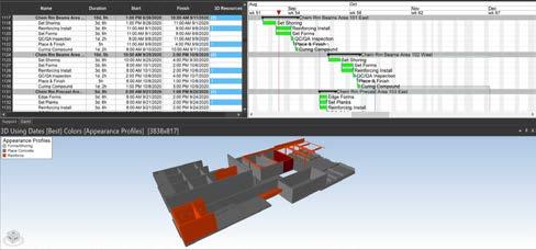 DIGITAL REHEARSAL The continuous linking of 3D design models to CPM schedules is referred to as 4D scheduling. Before construction starts, planners use 4D scheduling so that major construction activities are planned out in a safe, virtual environment. This planning approach identifies conflicts and challenges in the construction sequencing so that the tasks can be optimized in virtual space to avoid problems in the field. The impact on reducing onsite construction time, costs, and avoiding delays can be significant. Additionally, the beneficial effect on safety is immediate with all field personnel understanding in detail the construction activities required and how to best perform them safely. A prime example of this is at the Saco River WTP project where the onsite project team has led a 4D scheduling effort that will lead to major cost savings and reduced time for construction.