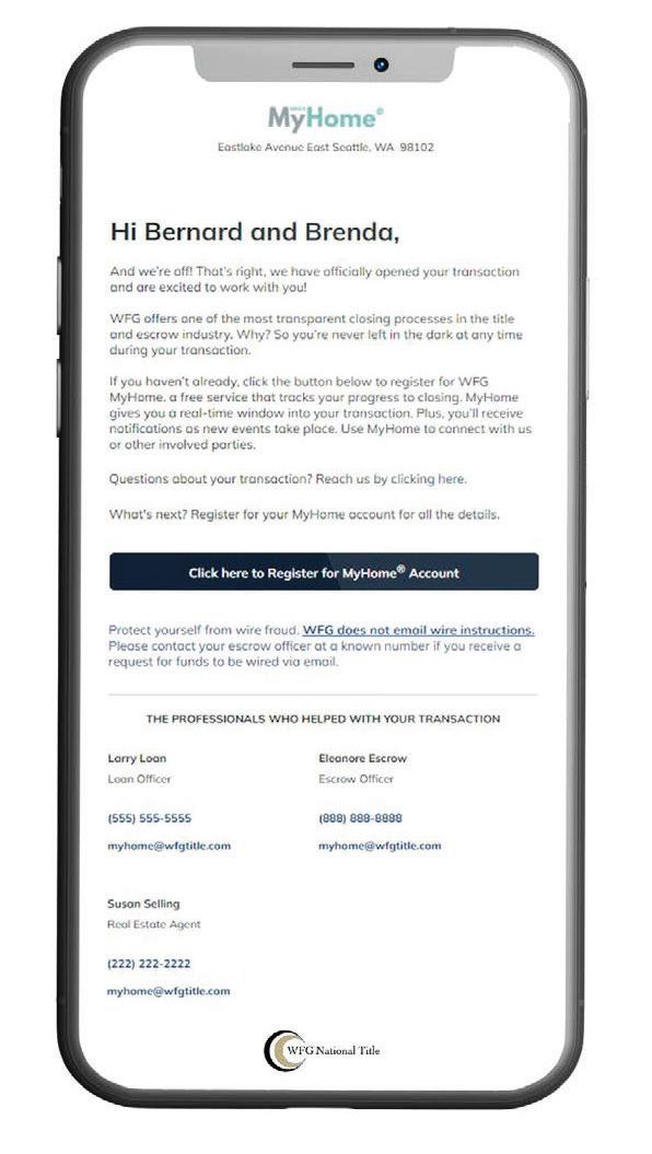WFG’s MyHome® provides full transparency, real-time updates, and post-closing home information in a secure built with YOU in mind.
