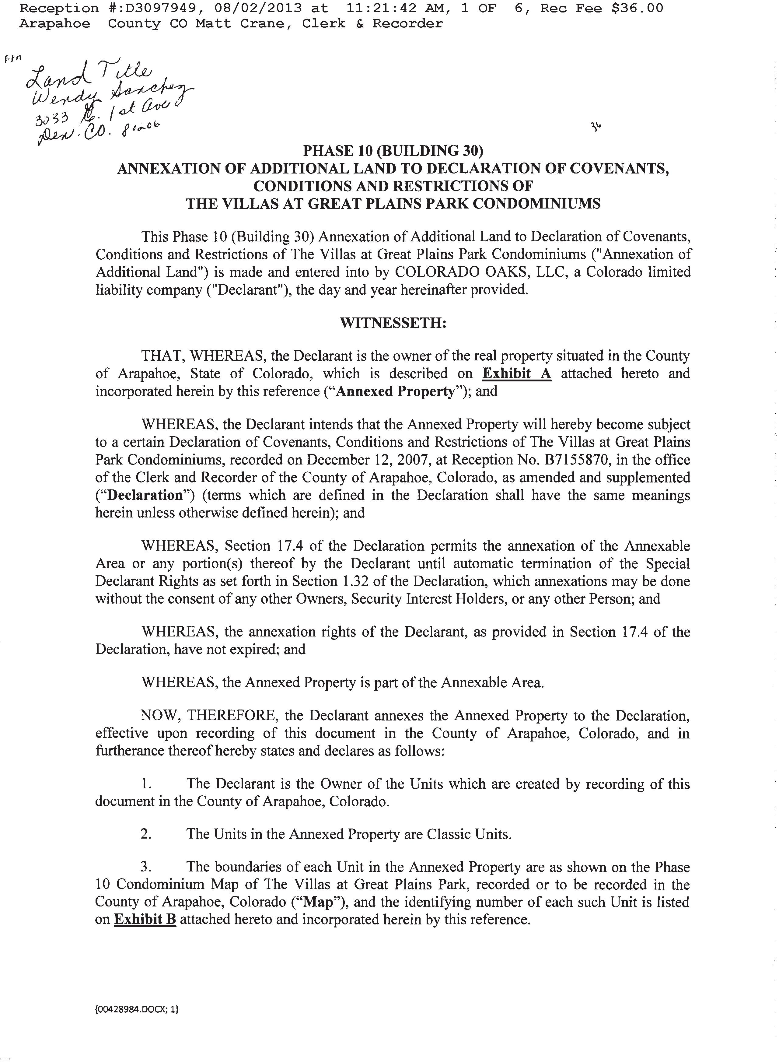 SUBDIVISIONCD 064407 SUBDIVISIONNAME THE VILLAS AT GREAT PLAINS PARK CONDOS PH 7 BLOCK 031 LOT 00D UNIT D BLDG 31 AS PER CONDO DECLARATION RECORDED ON RECEPTION #B7155870 THE VILLAS AT GREAT PLAINS PARK CONDOMINIUMS PH 7 EX M/RS