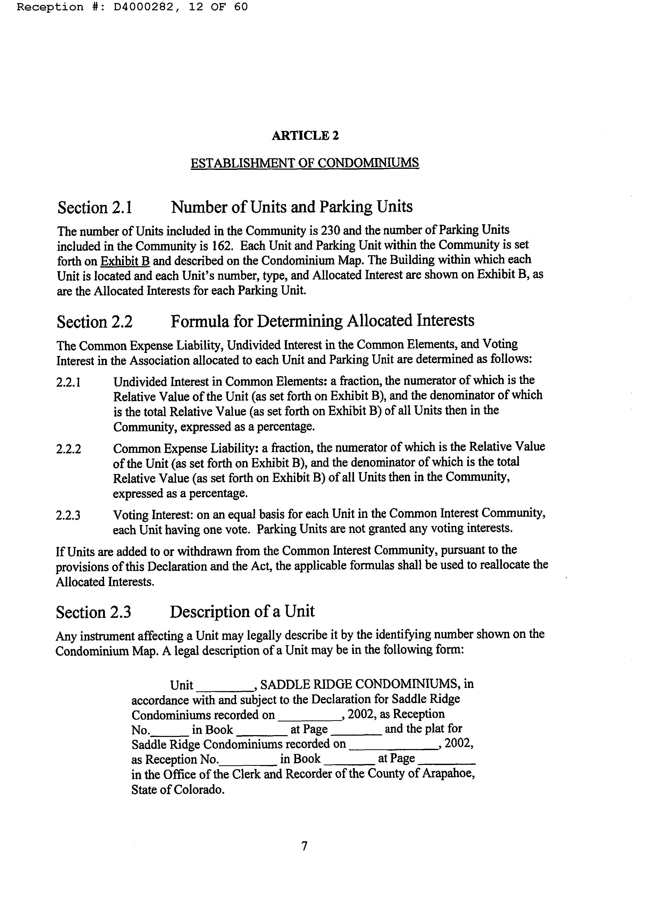 UNIT 1928 BLDG 19 AS PER CONDO DECLARATION RECORDED ON RECEPTION #B2213250 SADDLE RIDGE CONDOMINIUMS