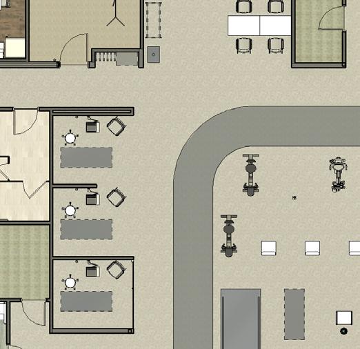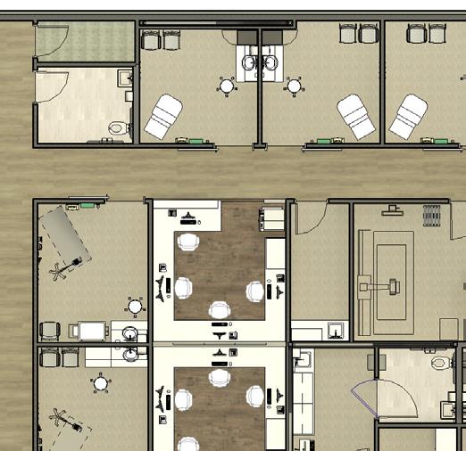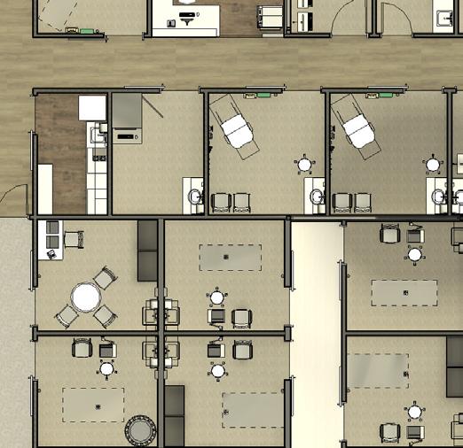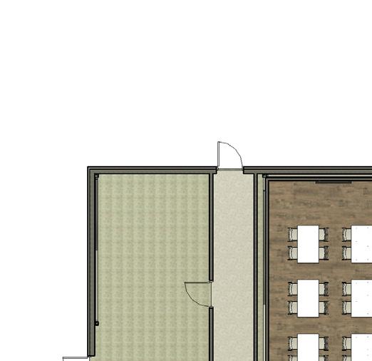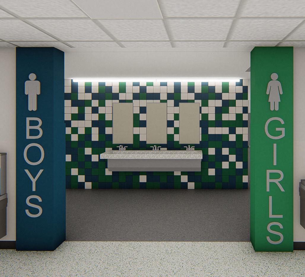 Each classroom followed the same standard as shown above with an accent “cove” on one side of the room. This cove consisted of a 2’ stripe of accent flooring and matching paint and ceiling tile. The existing column grid is dense, therefore many classrooms have structural columns that are painted the corresponding accent paint. TYPICAL CLASSROOM