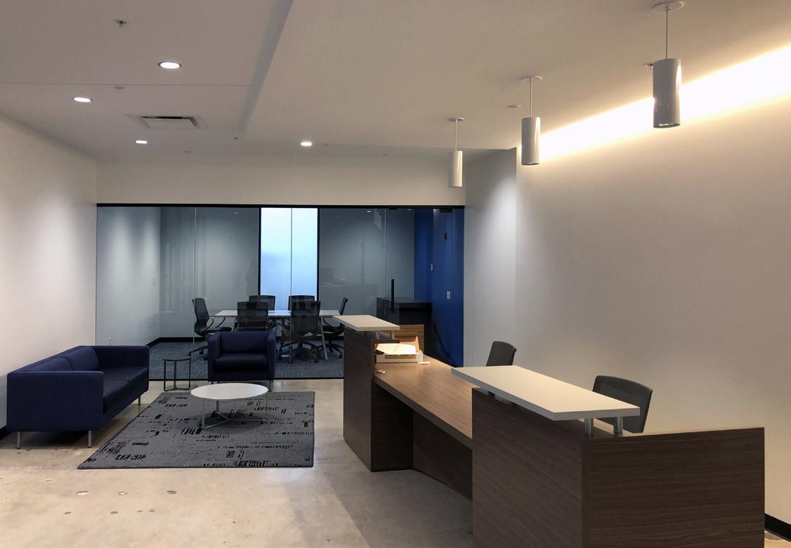My role on this project included creating and presenting finish palettes, creating the design for the reception desks, furniture specification and bid assistance. The design development and construction document phase took place during the pandemic, so I became very comfortable presenting virtually and preparing design decks for the client to sign off on for both our firm and the client to reference during construction to ensure that everyone was on the same page.