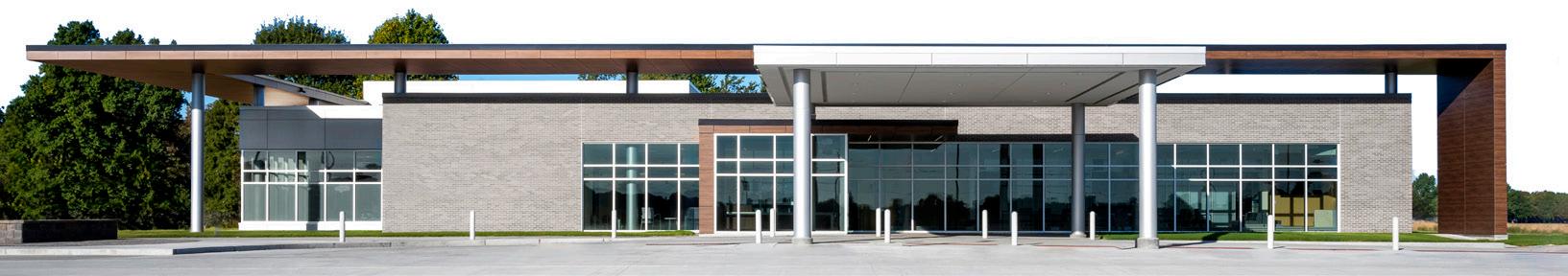 In 2020 Missouri Delta tasked us to create a design for their new outpatient rehab and physical therapy clinic in Sikeston, MO. With them expecting to build several new projects within the foreseeable future, we helped them create a brand standard that they can carry from building to building. Besides the general color palette becoming brand standard, another element that is beginning to appear across Missouri Delta’s new buildings is the dramatic overhang on the exterior. This overhang influenced the design language of the reception desks on the interior of the building.