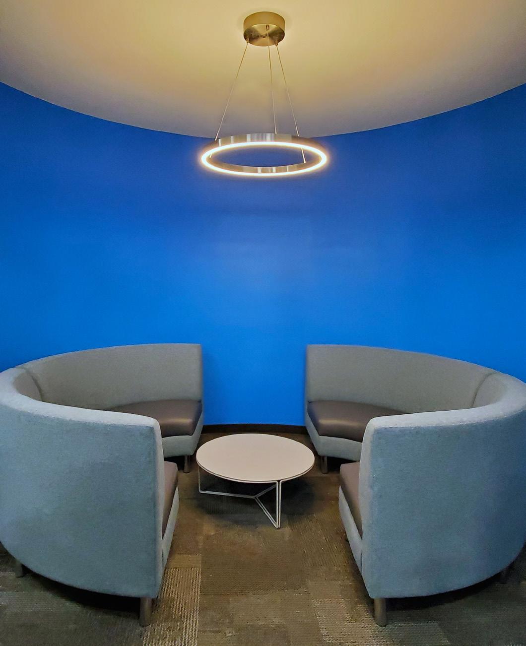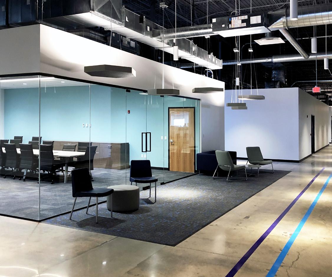 This corporate office was the first project that I worked on at CD Companies after leaving my first industry job at a furniture dealership. I was responsible for FF&E specification, fabric selections, and budget. With a client request to fit more than 500 people in the open offices, every inch of floor space had to be used efficiently. After working with the client to configure a space that would be able to fit all of the employees that they would need, their budget shrank from $1.5 million to $1 million with no change in scope. For this reason, they decided to bring over existing workstations for (2) of the (4) quadrants in this office space. Due to the pandemic, site visits were limited requiring me to use photos and furniture plans to reconfigure existing runs of workstations to fit in their new space while minimizing the number of additional connectors that may need to be purchased to install the existing workstations in their new office. With the number of workstations in each quadrant, panel heights were kept lower to prevent blocking natural light and help the space feel larger and more open.