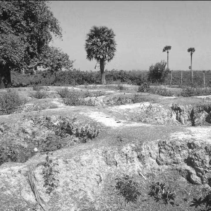 Here, near the eventual site of the 1 Makara Dam, the trunk of the palm tree watched as a man built himself a stupa to one day be buried in. Not long after he finished construction, however, the Khmer Rouge came. It watched as the now abandoned stupa was converted into a prison and torture chamber for cadres to use on those who did not meet their production quota during the construction of the dam. The tree witnessed the murder of hundreds of Cambodians here and their dumping in graves throughout the area.