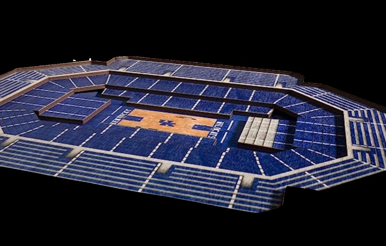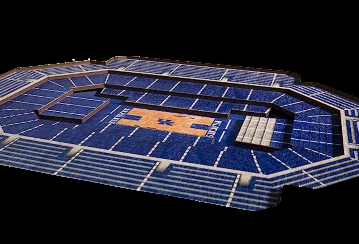 Unique 3D stadium design hand assembled from five individual layers of 1/8'' engineered wood