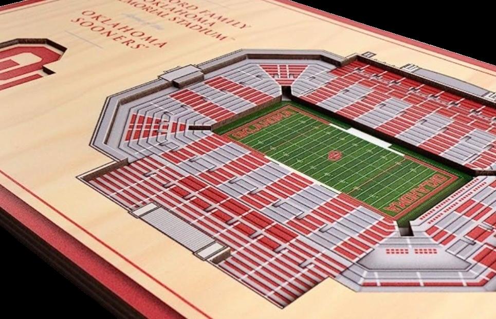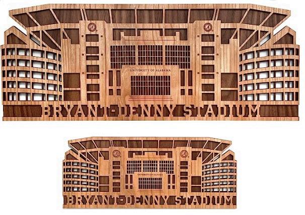 Unique 3D stadium design hand assembled from five individual layers of 1/8'' engineered wood