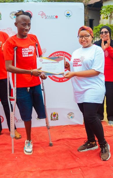 JumuiyayaWatuWenyeSikoseliTanzania iliwakilishwanawajumbewaokutoka SickleCellCommunitygroup, ambapo walishirikikatikamatembeziyakilomita1, yaliyoanziaofisiyaHalmashauriyaManispaa yajijilaArushanakumalizikakatikaHospitali yaMountMeru;Nabaadayahapoutambulisho nahotubakutokakwaNaibuKatibuMkuu WizarayaAfyaDkt.SeifShekalaghenawageni muhimuwaalikwa, Ikifuatiwanatukiomaalum lauzinduziwaklinikimpyayasikoseli Hospitalinihapoikiwanijambolakherikwa watuwenyesikoselimaanawatapatahuduma kwaukaribuzaidinapiaitasaidiakuepuka gharamazakuhudhuriaklinikibinafsi.