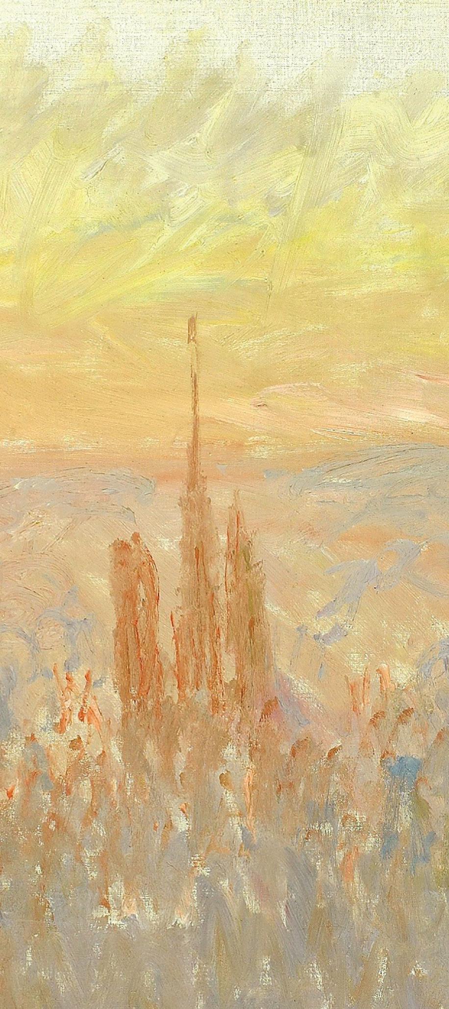 ‘General View of Rouen,’ was painted by Claude Monet and remained ‘hidden’ for many years. It was shown to the public for the first time in Rouen in 1994, on the occasion of the ‘Rouen, Monet’s Cathedrals’ exhibition and was acquired by the Rouen Musée des Beaux-Arts the following year. The painting is in the public domain.