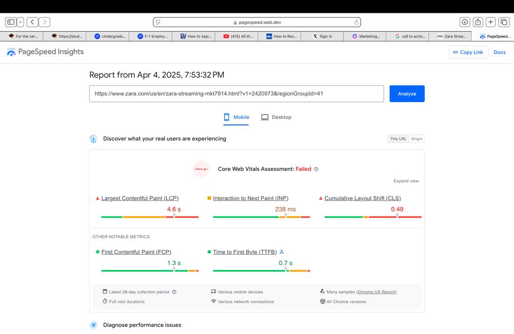 In our opinion, it is a brand with a long trajectory, with very defined, minimalist, and professional branding. However, we noticed that it needs improvement in certain aspects, such as the font type and size, as they can be difficult to read. In its apps and website, there are some missing buttons like “back to top,” which would make the experience more efficient. Its performance and speed are not very good, which causes users to leave the website/app repeatedly, potentially leading to abandonment of the site and loss of sales.