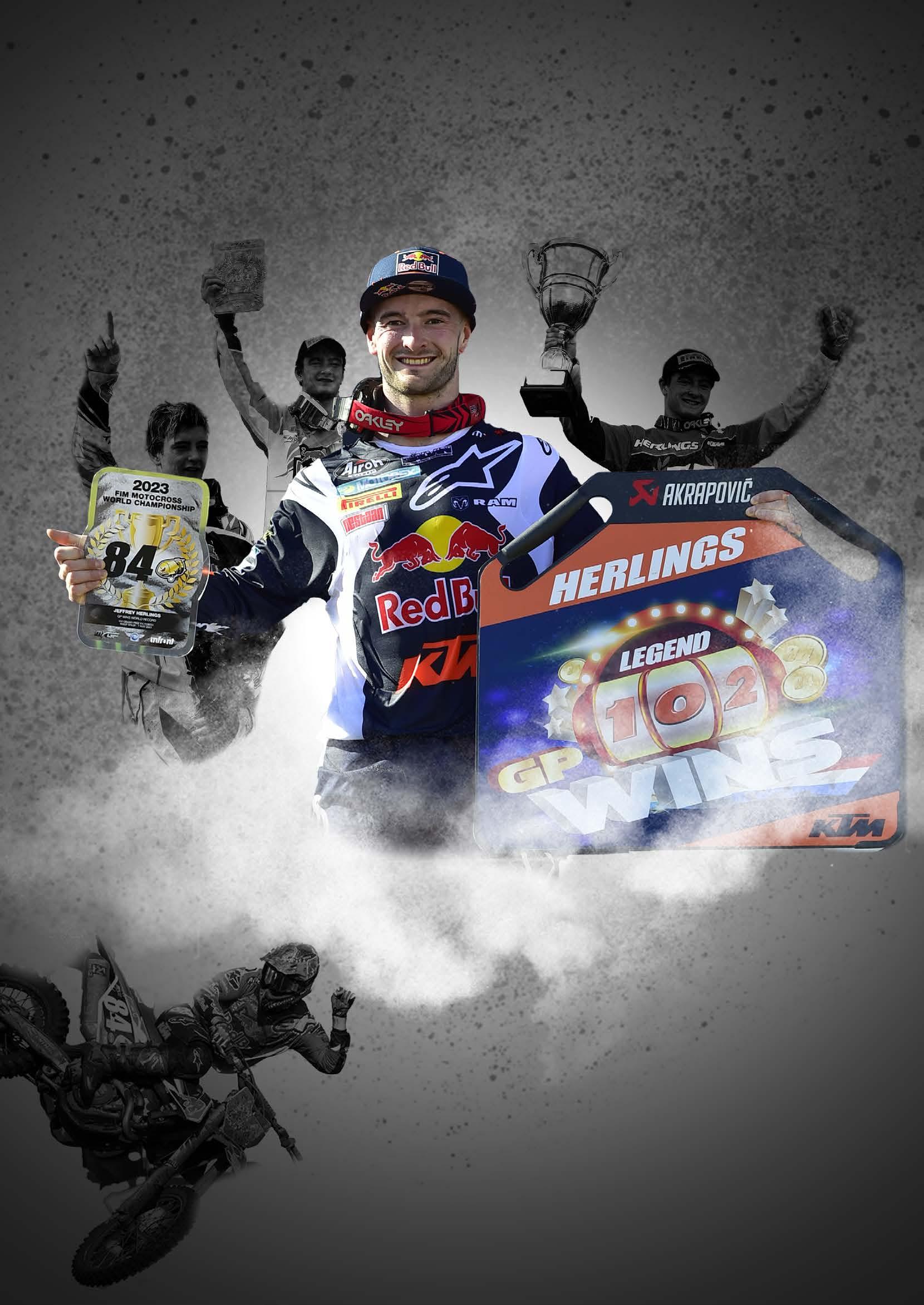 10 Jeffrey Herlings holds the ‘102 Legend’ plate after the MXGP of Spain and breaking the all-time GP wins record, previously held by Stefan Everts.