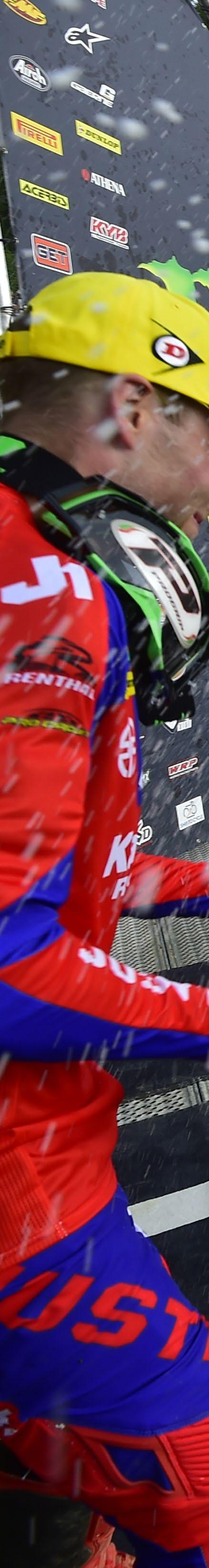 Two legends side by side with 101 GP wins Fernandez finished 2nd for 7th overall In second position on the podium was Febvre, who is getting into his groove as we saw all his technique in one sensational move when he overtook Seewer for 3rd He changed his rhythm right before jumping on the inside of Seewer to pass him and get another podium on the 2nd step Prado was not as incisive as in race 1 and finished 6th, but still got on the 3rd step of the podium to continue his podium showings to 100% this season which is a strong feat given the tough competition