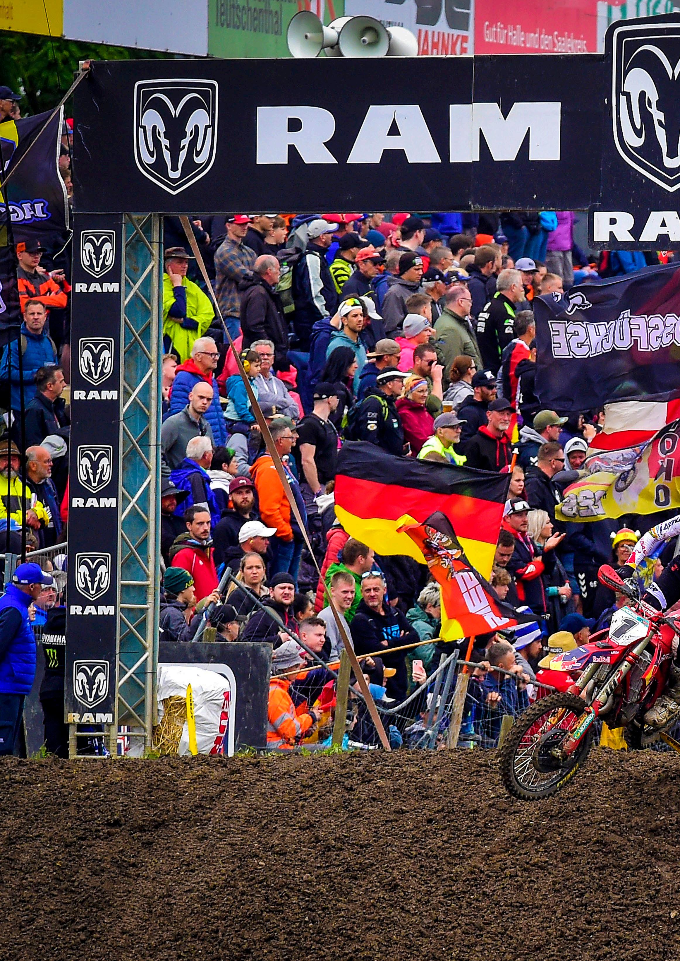 A continuing feature of the 2024 World Motocross Championships has been the influence of the weather, and the storms from St Jean d’Angely followed the series across to Teutschenthal, as a heavy rain shower hit the circuit just thirty minutes before Saturday’s RAM Qualifying Races got underway!
