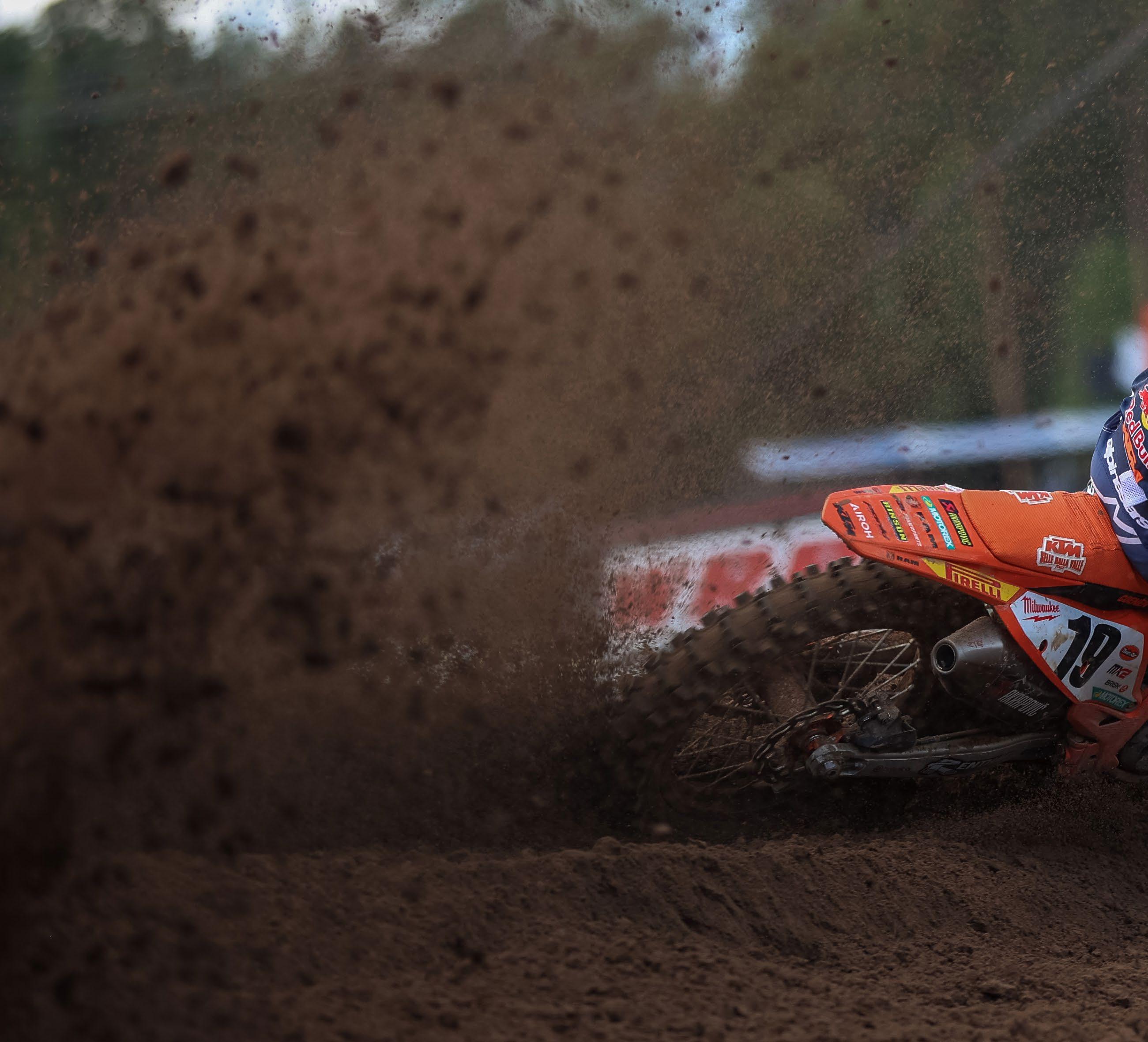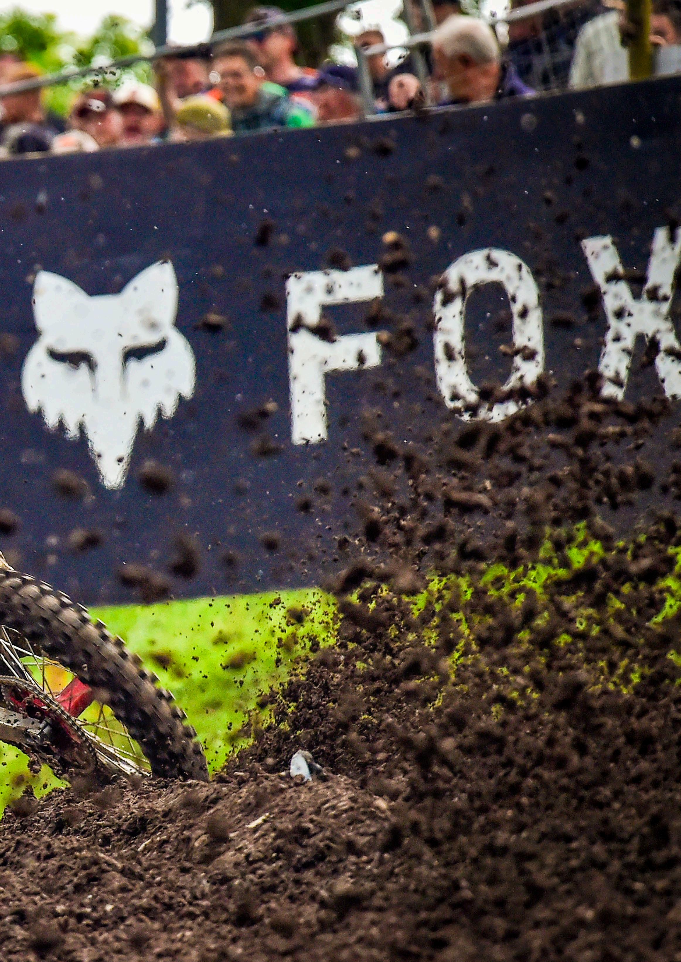 That second race saw the three most successful active riders in MXGP spend almost the entire race at their very maximum pace, on a circuit that was some five seconds faster with no additional rain since the morning. Although the reigning Champion took the Fox Holeshot Award, his ninth of the season, “The Bullet” was right with him early and closed to within a second at the halfway point of the race! The Dutchman then hit a fast rutted corner just a little bit too hard, and the near-crash dented