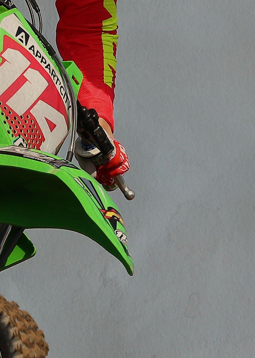 A quick look at the whole Yamaha roster in MXGP will lead you to Calvin Vlaanderen, currently battling in the top five of the 2024 World Championship in his first year in the Monster Energy Yamaha Factory MXGP team. The 28-yearold South African found his way to this level via the very same path, moving to the Netherlands as a 15-year-old in 2011, and eventually taking Dutch citizenship through his family history. By the time the series had been re-branded as EMX in 2014,