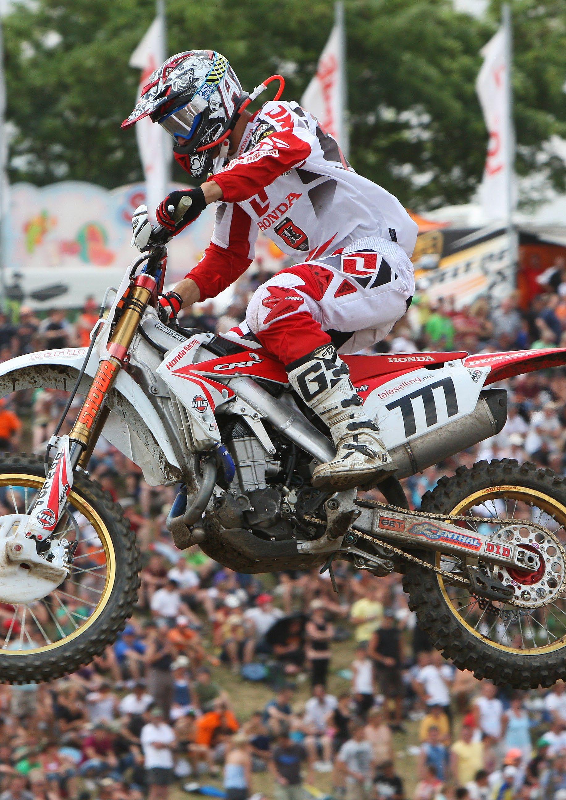 It was time for him to move on a 450cc in 2010, a bike more suited to his size. Signing a Pro contract with CAS Honda based in UK, he had a strong season with a tenth in the MX1 championship and another title, this time in the British championship. Signing with the Honda World Motocross team he improved his results in 2011 with his first ever podium at the third round in USA, a Grand Prix win in Germany and four other podiums! Fourth overall he was expecting even better in 2012, but he injured one hand after a bad crash during a practice session at the first round of the year in the Netherlands; he was forced to miss one round and had a couple of DNF, but also scored top ten results in most of the motos to finish the season in the top ten with a ninth position. Riding sometimes too hard, he struggled with injuries during the following two seasons, missed a couple of races but won the Dutch Championship in 2013 and always kept his factory contract as everyone knew how determinate he was.