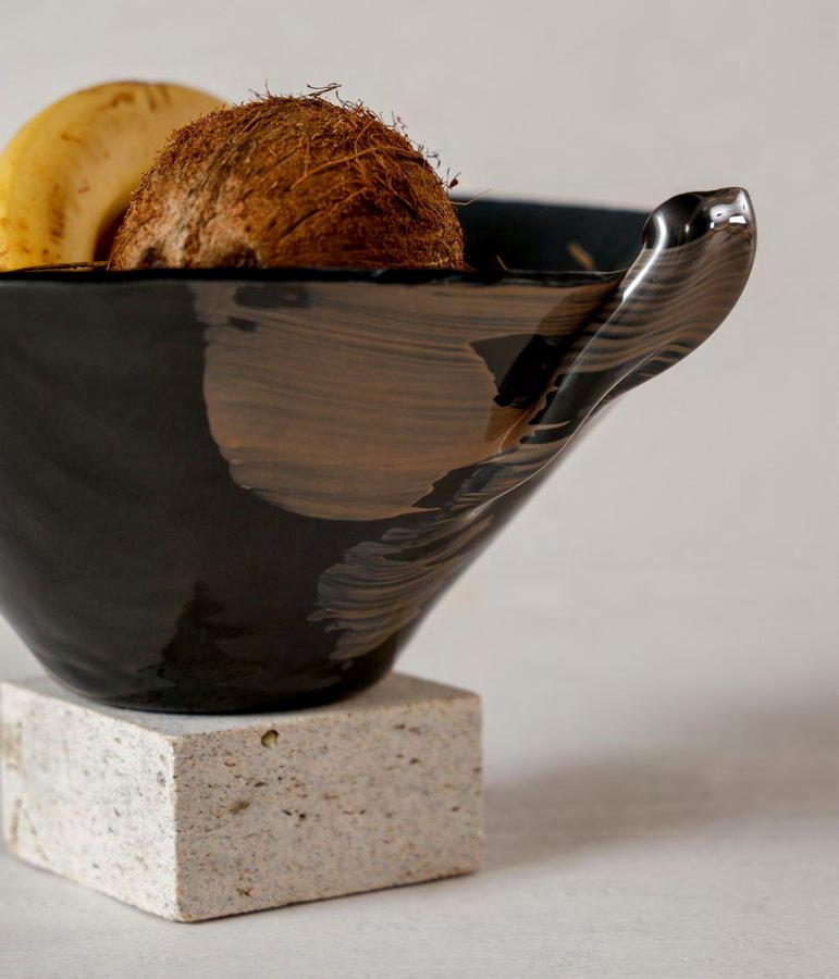 Footed Fruit Bowl Brown