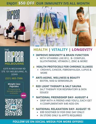Explore patient reviews on Google. For more information or to schedule an appointment, call 321-421-7111 or visit AntiAgingIM.com. CAARM is located at 6765 N Wickham Rd, Ste C-105, Suntree. See ad, page 15.