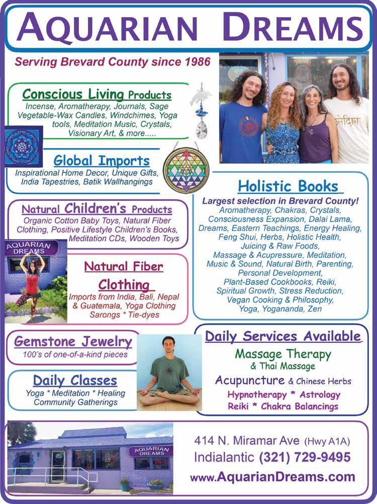 Cost for the entire weekend is $425. For more information or to register, call 321-729-9495 or visit AquarianDreams.com/special-events. Aquarian Dreams is located at 414 N. Miramar Ave (Hwy A1A) in Indialantic. See ad, page 3.