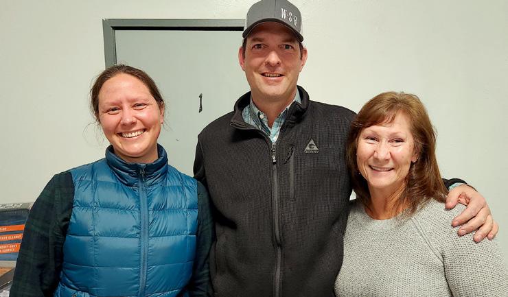 Jaime Ott, new UCCE orchard crops advisor for Tehama, Glenn, Shasta and Butte counties, left, stands with, Josh Davy, center, livestock and natural resources program advisor for Glenn, Colusa and Tehama counties and Kendra McCluskey during a Tehama County Farm Bureau event in January (all photos by J.R. Johnson.)
