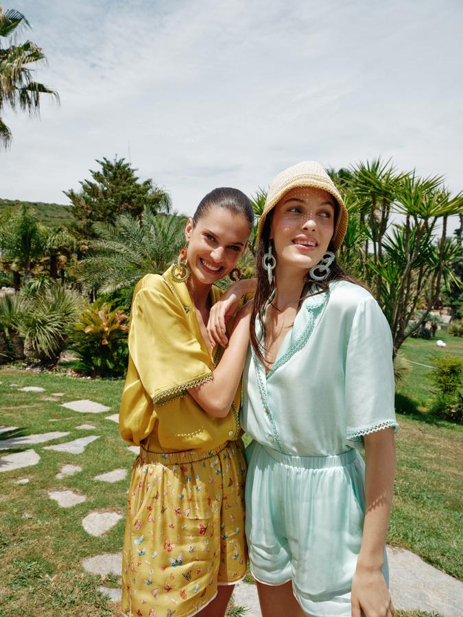 M I M O S A B U T T E R F L Y H A L T E R T O P & F R E E S I A B E A D E D S H O R T S