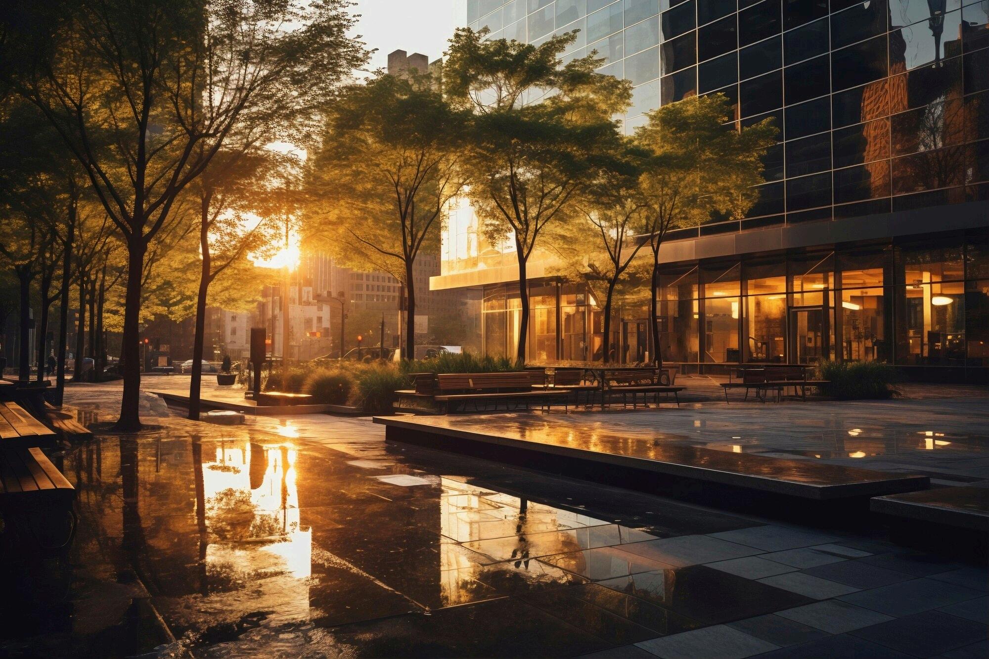 A vibrant, walkable urban center combining office spaces, coworking hubs, and leisure facilities