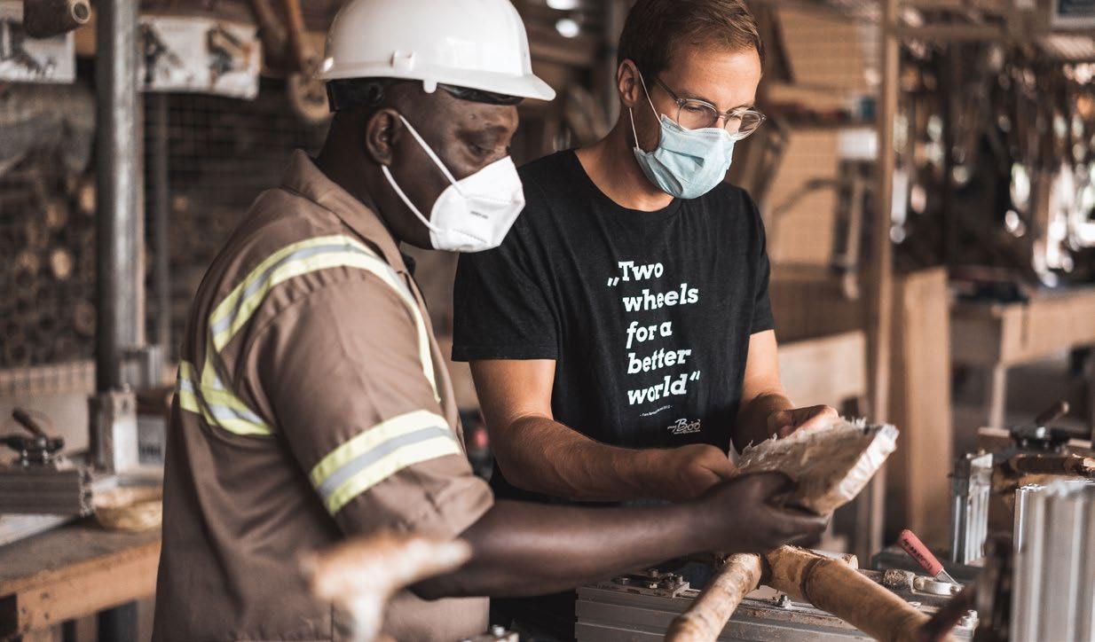 In Ghana arbeiten wir mit dem sozialen Yonso Project zusammen. Die Mitarbeiter*innen schlagen den Bambus vor Ort. Etwa 80 Stunden liebevolle Handarbeit machen daraus deinen einzigartigen Bambusrahmen. S. 4