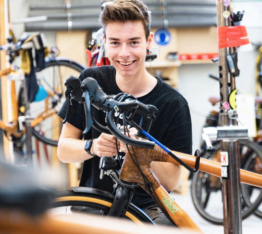 In Kiel angekommen, bauen wir die Bambusrahmen zu fertigen Fahrrädern und E-Bikes auf. Jedes Bike wird dabei per Hand in Einzelplatzmontage montiert.