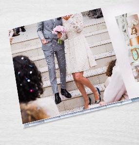 Ourinteractiveweddingguestbookfeatures yourengagementphotosalongwithlittle promptsthatencourageyourgueststoleave littlesnippetsofadviceandwellwisheson yourweddingday.