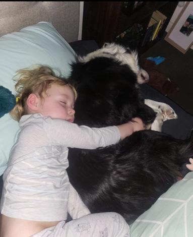 “I have two Border Collies, Barry (white face) and Bailey. Both are about 10/11 years old. I didn’t get them from puppies but from when they were about 2 years old. A family was moving and couldn’t keep Bailey, and Barry was a shearer’s dog but didn’t work the farm just was always tied to a truck so they became my babies.