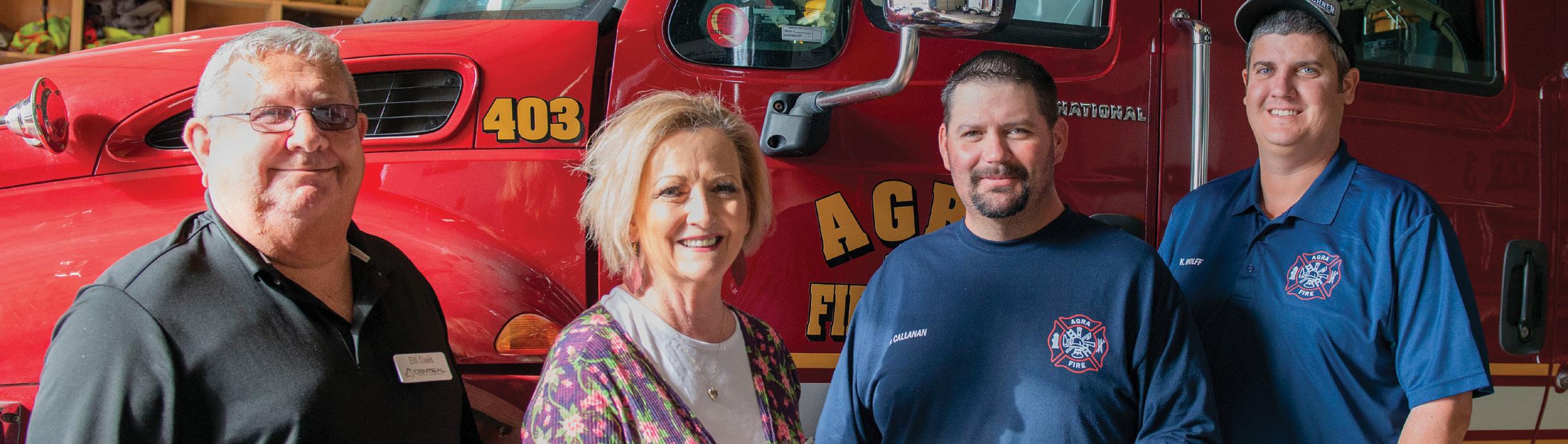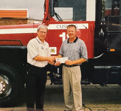 Randy Jarvis presents a Central Community Foundation grant to the Cushing Fire Department.