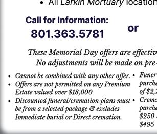 Sunday, May 26, 7 p.m., FREE Memorial Lakeview Mortuary & Cemetery, 1640 Lakeview Dr., Bountiful