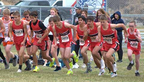 The Cardinal men's cross country team takes off at the start of last weeks district championships.