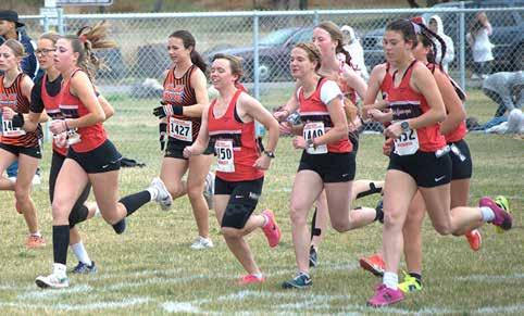 The Lady Cardinals at the start of the district championship race.