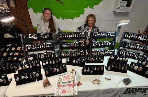 Their raw and infused honey products contain a number of different flavor profiles, based on the flowers the bees gather pollen from. Charleigh Carlson was with her daughter Ocean to promote their very newly acquired cider business, Cidre de Pomme. Alyson and Mike Smith were selling a variety of holiday items including wreaths as part of Alyson’s Creations and Décor. Alexis Carroll and Macie Wyler-Sturges were selling etched wood and other items. Soleil Somsen was raising money for touring sports expenses, and was teamed up with Ann Poulsen, who, along with her husband, creates beautiful rock jewelry using a lapidary machine.