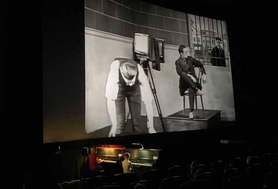 Two students play along with a 100-yearold film at a recent Silent Film Celebration.