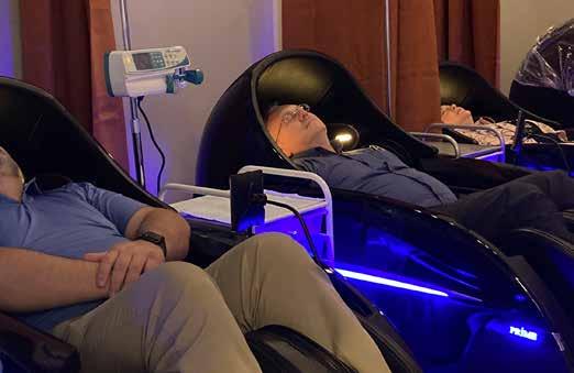 clients sit in a massage chair. We give them the full spa experience with soothing music. It’s pretty amazing they are relaxing while they have a drip.”