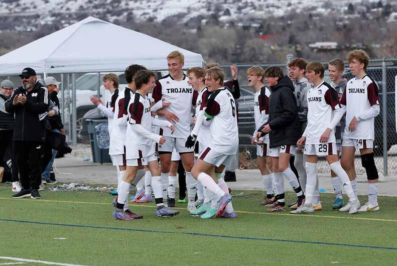 THE TEAM CELEBRATES after Warner’s second goal against Grantsville.
