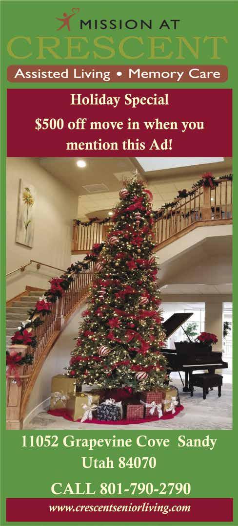 D e C . 2022 | page 5 D raper J ournal . C om Tree Services 10% OFF DiamondTreeExperts.com 801-79 7-234 7 Contact us today at DON’ T LE T WIN TER CRU SH YOUR H O LI DAYS! •24/7 Emergency Response • Power Trimming • Stump Grinding •Demolition Options • Organic Mulch Products Call Diamond Tree Experts today –Your local experts in tree trimming & removal Must present coupon at time of estimate Expires 1/31/23 On Staff Ye ar R ound • FULL Ben ef its • B o nuse s Over tim e • P aid Vacati o ns • 4 01 k G rowth Oppo r tunitie s SIGN ON BONU S Call 801-262-1596 or email trent@diamondtreeexperts.com NOW HIRING! up to $80K ! $35K From