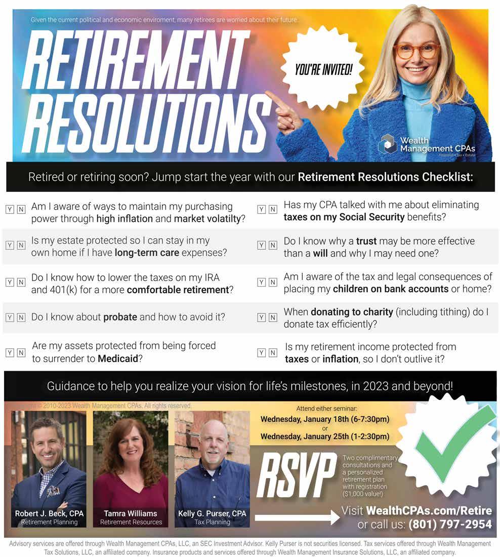 Thank You ECRWSS Local Postal Customer to our Community Sponsors for supporting City Journals Presort Std U.S. Postage P A I D Ogden, UT Permit #190 Scan Here: Interactive online edition with more photos. FREE Jan. 2023 | Vol. 17 Iss. 01