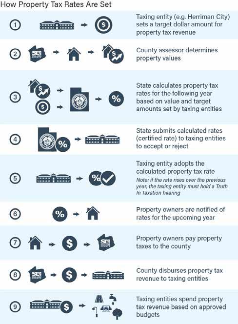 “For efficiency, taxes are paid to one central entity, the county,” Herriman’s website says. “The county then disburses the tax revenue to the various taxing authorities throughout the year based on their rates. Those taxing entities and their governing boards may then expend the money based on their approved budgets.” l